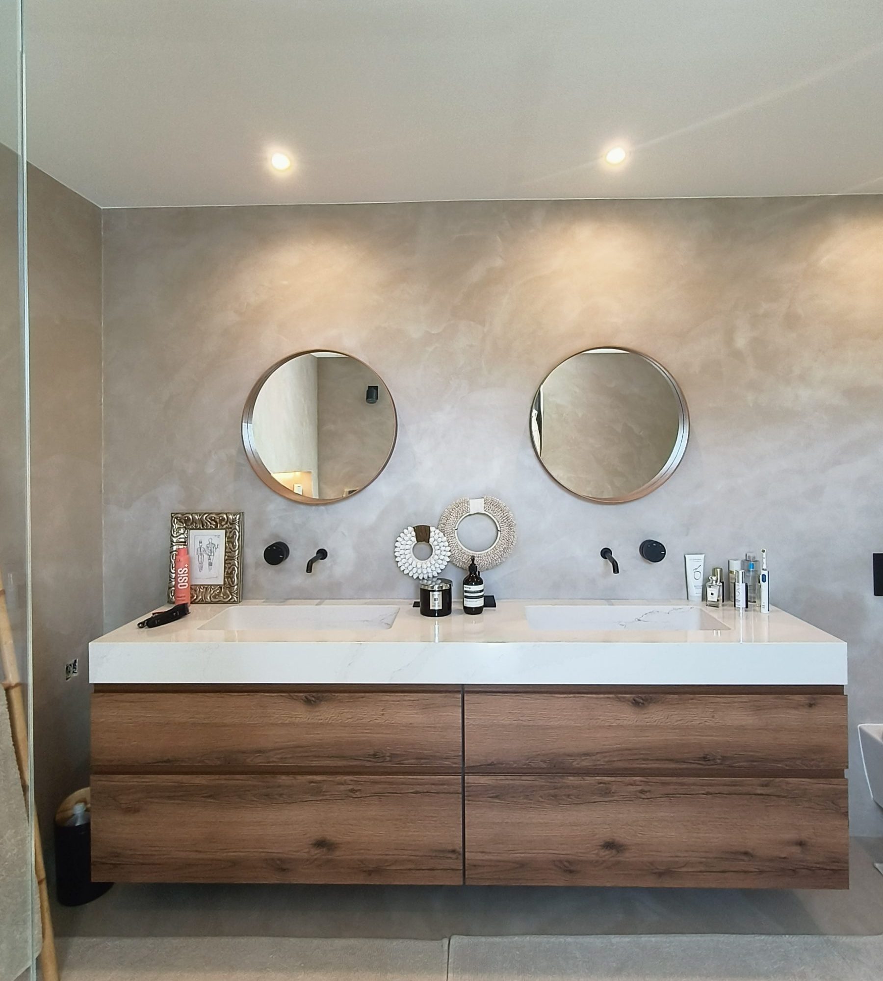 Con un acabado estucado, con aguas o nubes, es el Microcemento más conocido y empleado en la decoración de interiores.